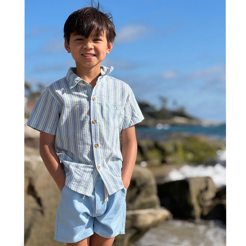 Me & Henry Newport Chambray Blue & Mint Stripe Shirt - arriving 2-18-2026