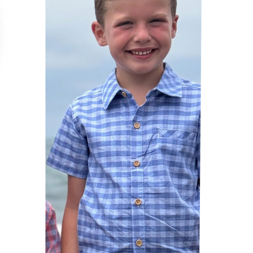 Me & Henry Dark Newport Chambray Blue Plaid Shirt - arriving 2-18-2026