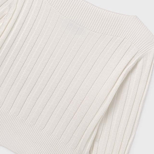 Great Basic!!  Winter white ribbed sweater knit with boat neck style neckline.