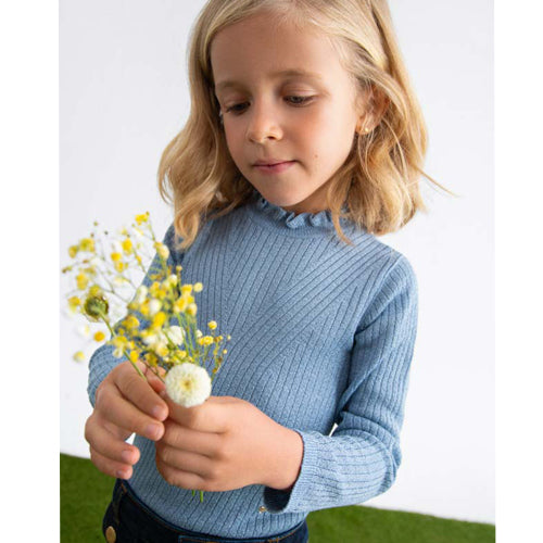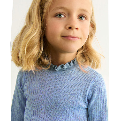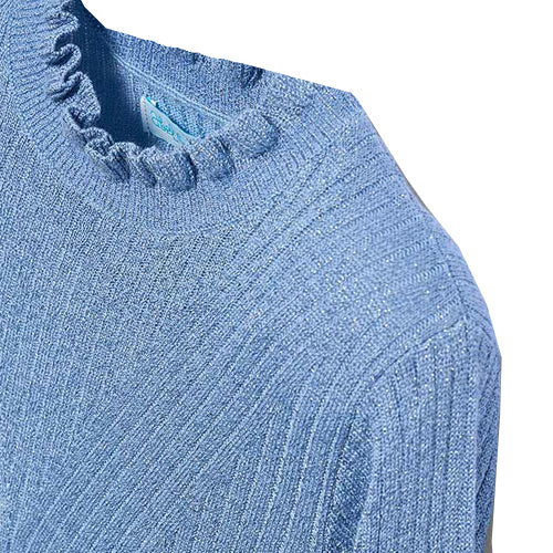 Love the Color!! Wedgewood blue sweater with unique design on sleeves and around neckline, cuffs...