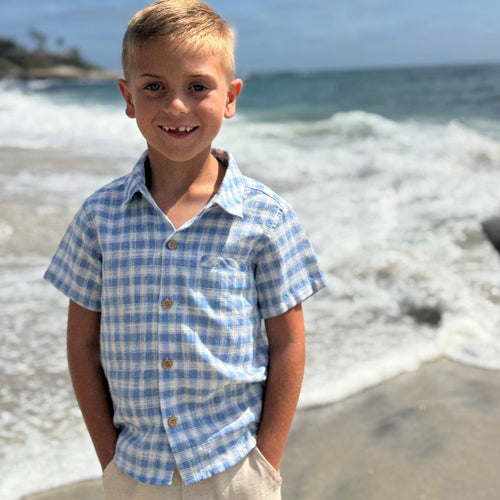 Me & Henry Blue and White Plaid Shirt - arriving 2-18-2026