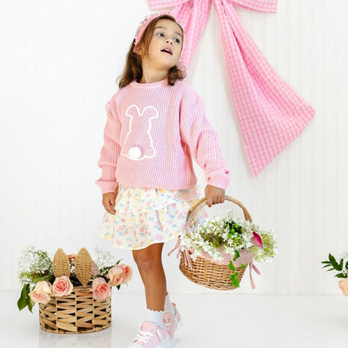 Easter Bunny!! Easter bunny is outlined in white with a fluffy tail on a pink...